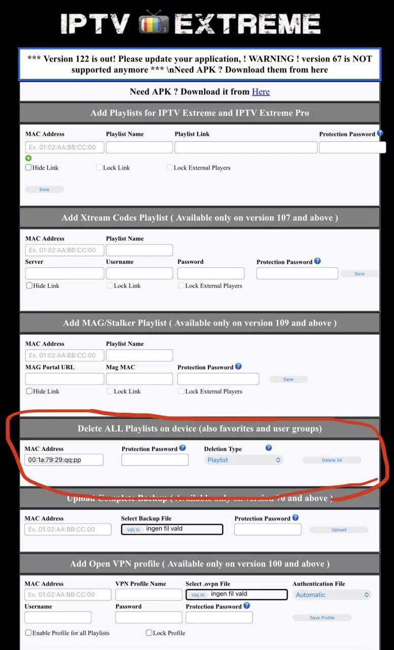 Xtream Codes Playlist (inloggningsuppgifter)