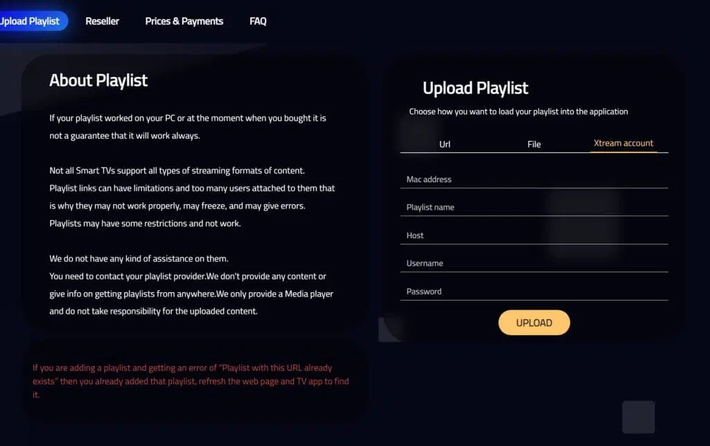XUI IPTV Player är en relativt ny app som finns tillgänglig för flera enheter. Appen är enkel att använda – du fyller bara i dina inloggningsuppgifter direkt i appen, utan att behöva ladda upp spellistan på deras hemsida som med många andra appar.